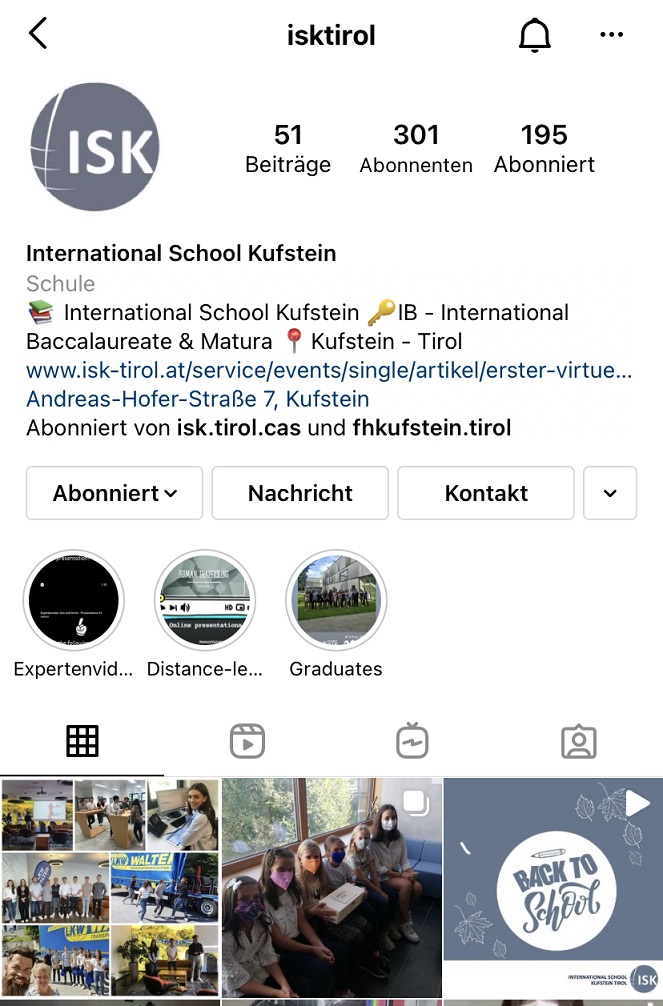 The official Instagram page of the International School Kufstein Tirol is now available under the name: "isktirol".