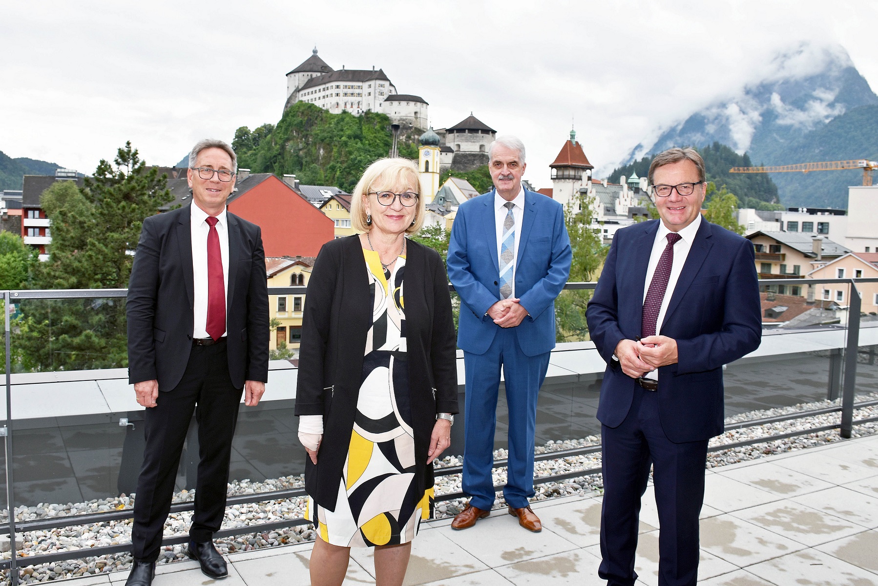 from left.: Martin Krumschnabel, Mayor of Kufstein; Beate Palfrader, Member of the Regional Government; Herbert Marschitz, Chair of the Board FH Kufstein; Günther Platter, Governor. (c) Land Tirol